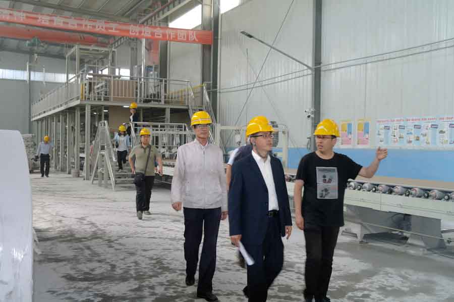 6月7日上午10時許,白銀市組織部檢查小組在我公司常務總監(jiān)徐總、網(wǎng)絡部一行人員等的陪同下,蒞臨我公司三線紙面石膏板生產車間參觀指導公司新品耐水、耐火高檔紙面石膏板的生產情況。
