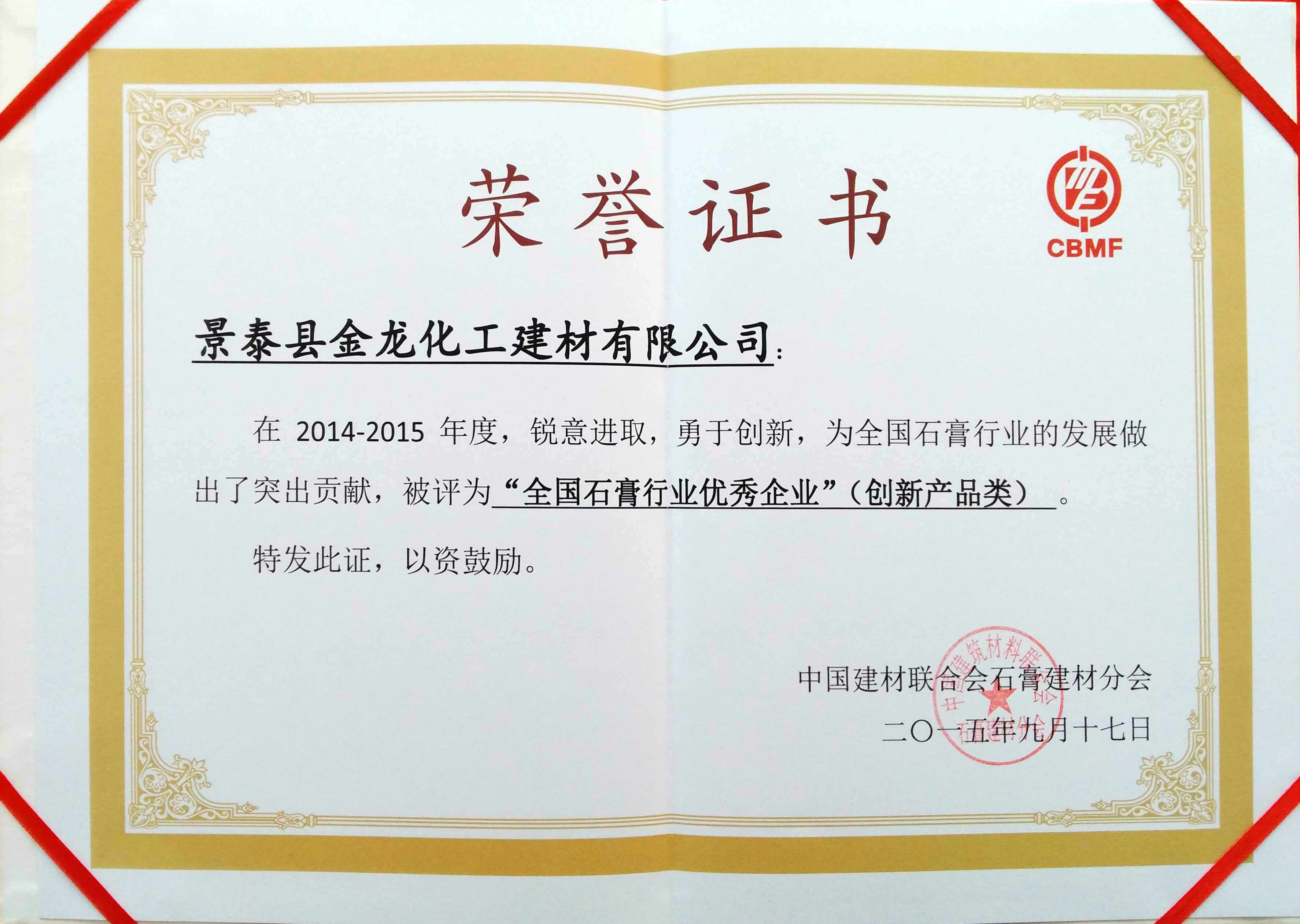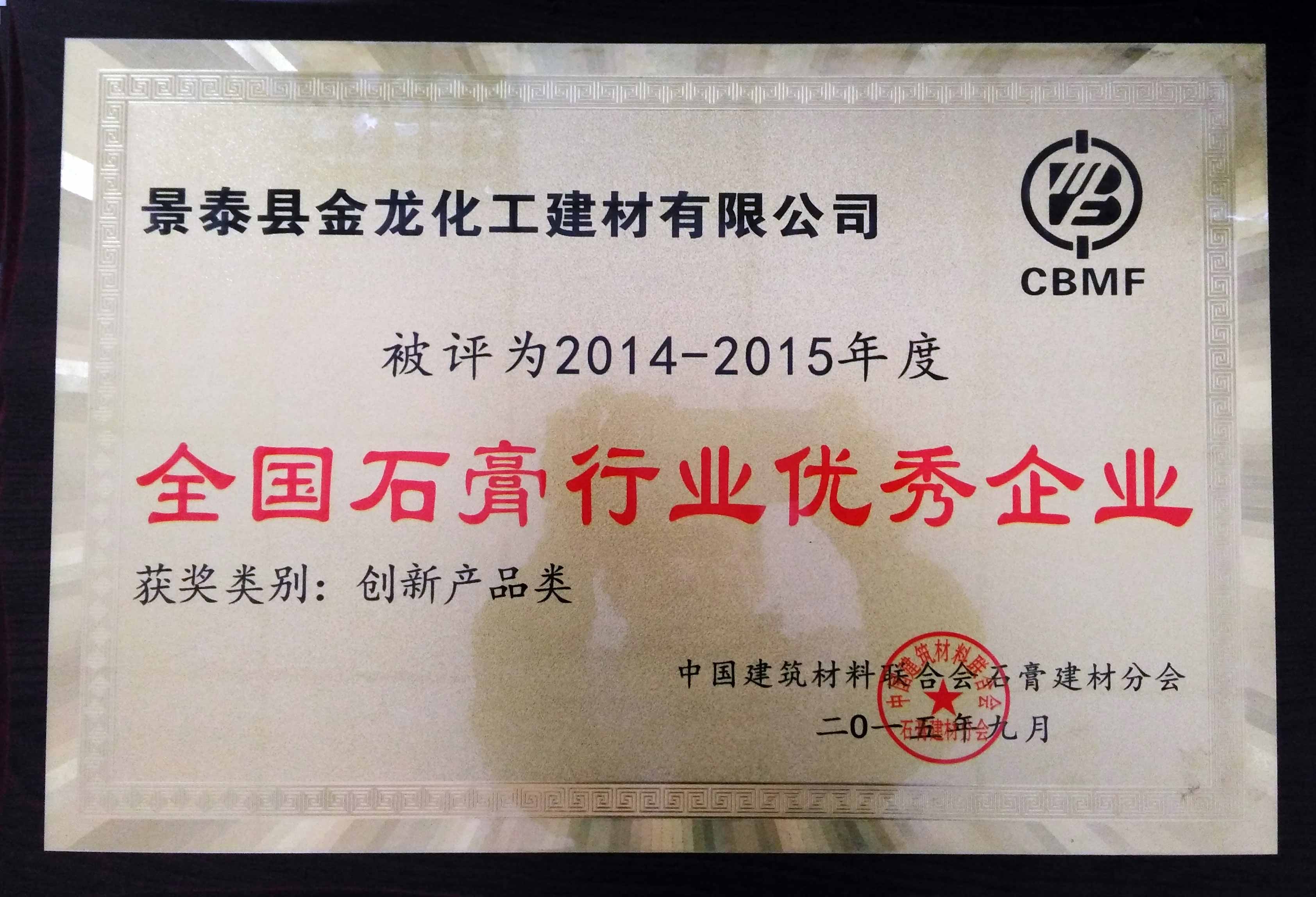 2014-2015年度全國(guó)石膏行業(yè)優(yōu)秀企業(yè)